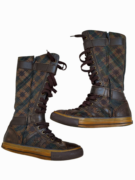 vintage converse STAR 70 XXHI lace-up buckle boots (midnight suede plaid)