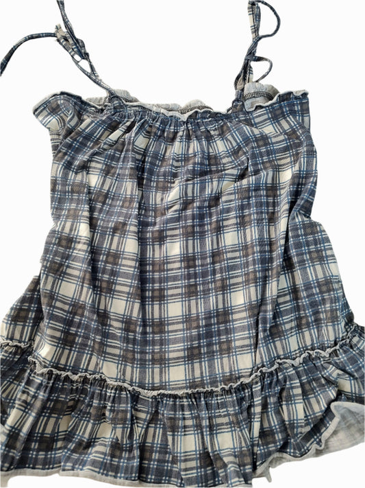 vintage eu label navy plaid y2k cami-style babydoll blouse