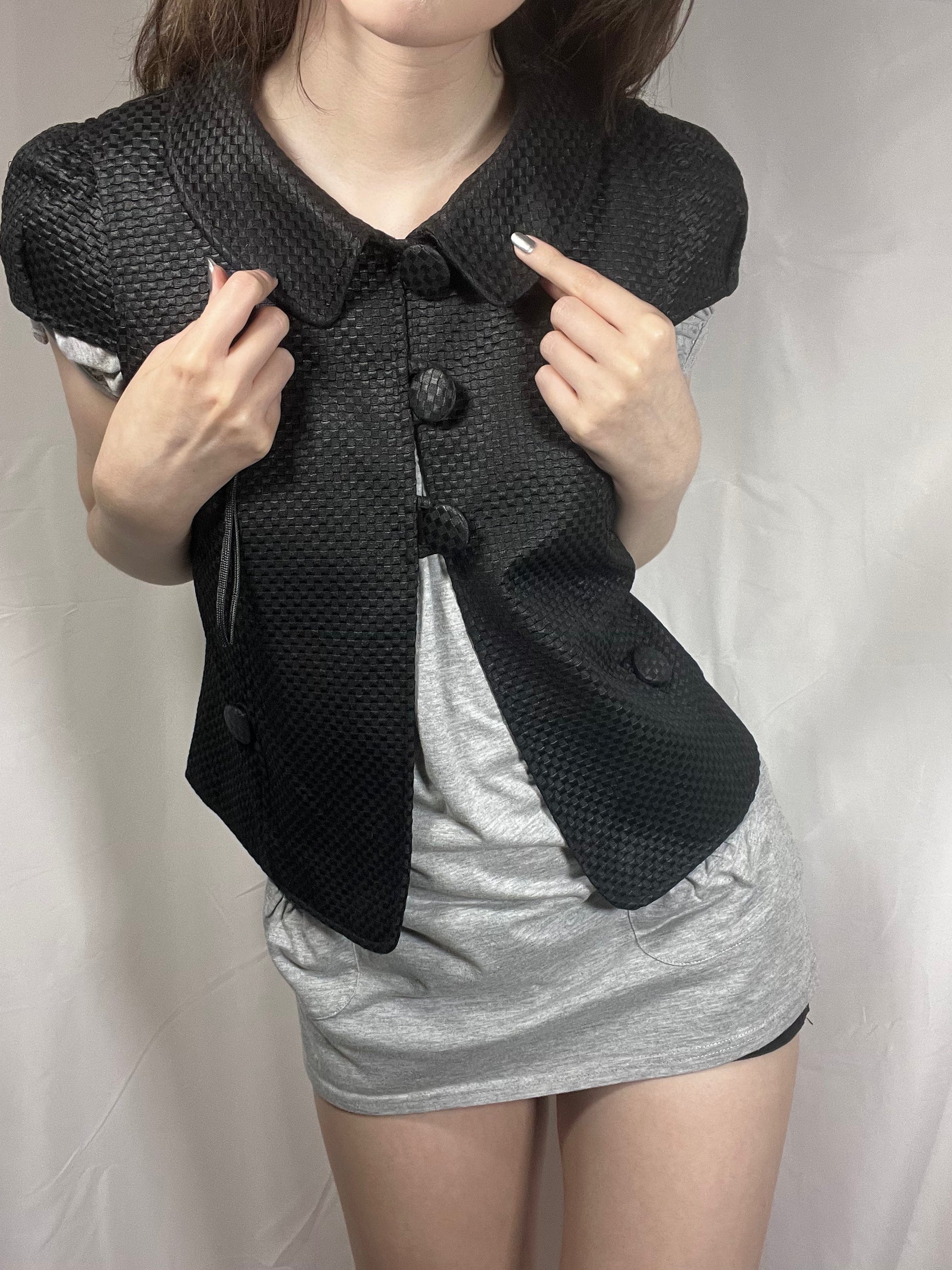 Vintage black peacoat from the French brand Naf-Naf in 36/S (fits an S-M comfortably). Made of a cotton-polyester blend that has a unique woven/grid design. Short, cap-style sleeves. It is to be worn as an overcoat/petticoat. Super versatile, would be cute with pants, shorts, or a skirt. No visible flaws with the item aside from slight general wear.